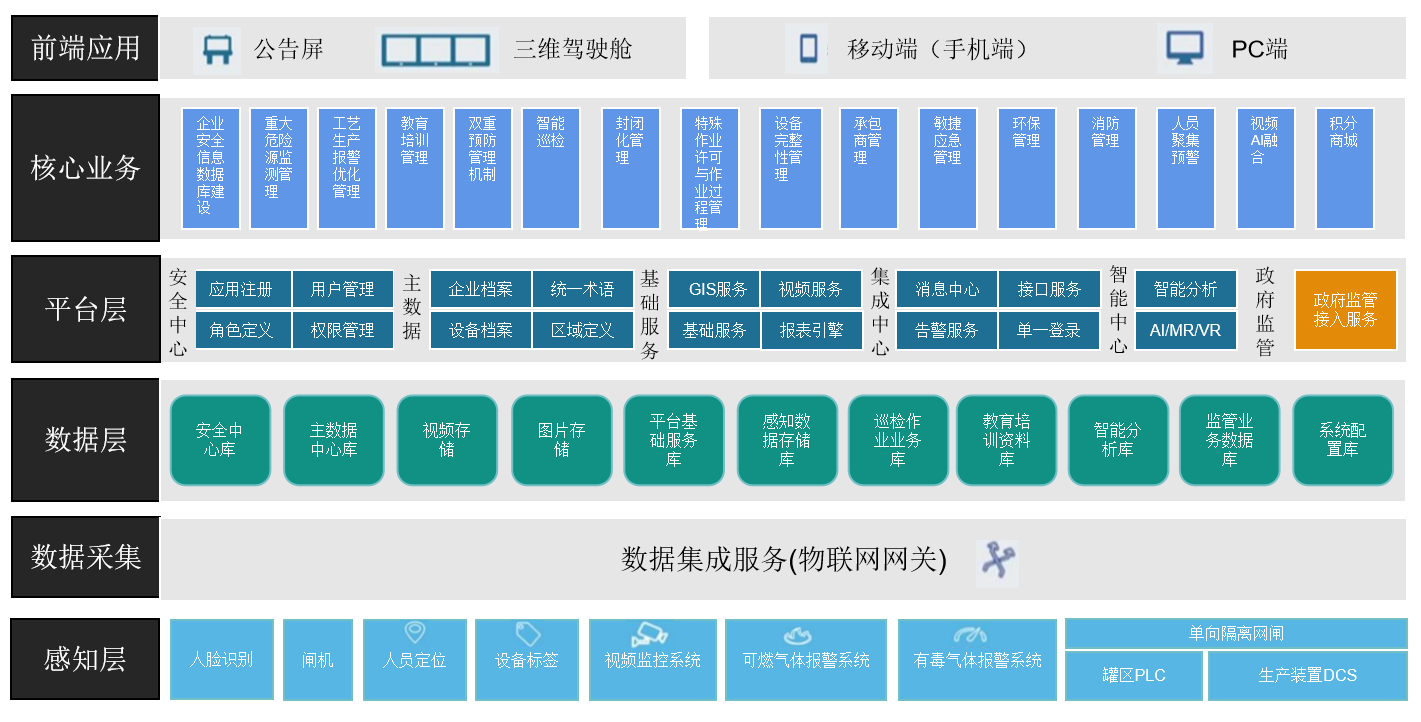 建立一套高效、可视化的安全风险智能化管控平台,以电脑端(PC)与移动终端(APP)为载体,明确工作人员在安全管理体系中的职责。
