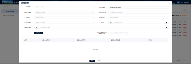电子巡检模块具备巡检巡查人员角色、巡检点、巡检内容等全要素的数字化配置功能,并能实现根据实际情况实时新增相应内容的功能。具备在线制定多种类型巡检计划的功能。巡检计划还支持按时间区间和检查次数自定义检查任务的方式、支持容错时间和补检时间的设置,允许检查人员在容错时间内进行检查,在补检时间内进行补检,未到时间不能检查,超过时间显示为漏检等管理功能。具备按照设定的巡检计划自动生成巡检任务的功能,并能将任务自动下发到相关检查人员移动终端账号下。